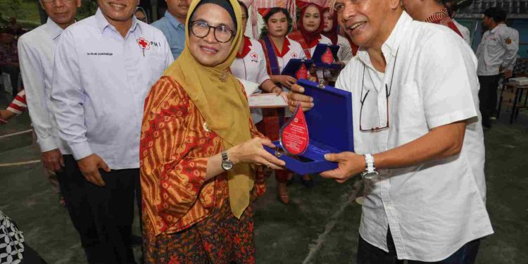 Siantar — Walikota Pematang Siantar, dr Susanti Dewayani SpA, menyerahkan piagam penghargaan kepada 117 pendonor darah sukarela PMI Kota Pematang Siantar. Piagam penghargaan diberikan bersamaan dengan peringatan Dirgahayu ke-78 Palang Merah Indonesia (PMI) yang digelar PMI Kota Pematang Siantar di Balai Rahmat Shah Taman Hewan, Jalan MH Sitorus, Kecamatan Siantar Barat, Jumat (22/9/2023) siang.
