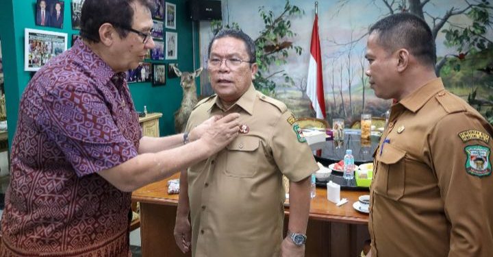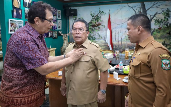 Di akhir pertemuan, Rahmat Shah juga memberikan cenderamata dan menyematkan pin Perhimpunan Kebun Binatang Seluruh Indonesia (PKBSI) kepada Wesly. (PR/nda)