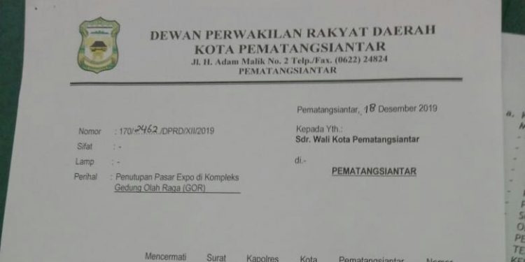 Siantar — DPRD Kota Siantar secara resmi meminta walikota untuk segera menghentikan kegiatan bazar di kompleks GOR yang sudah berlangsung selama dua pekan.