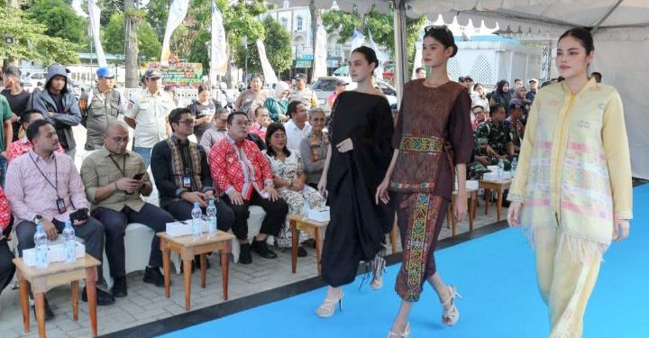Siantar — Walikota Pematangsiantar Wesly Silalahi bersama Ketua Dewan Kerajinan Nasional Daerah (Dekranasda) Ny Liswati Wesly Silalahi, menghadiri dan menyaksikan Fashion Show Wastra bertajuk Etnika Moderna, pada Kamis sore (23/04/2026), di Lapangan Adam Malik.
