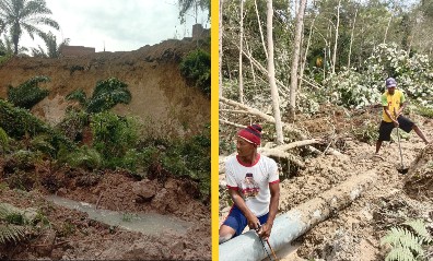 Sementara di lokasi longsor, tim teknis Perumda Tirtauli yang dipimpin Kabag Trandist, Jumirin, mengatakan bahwa perbaikan yang tengah mereka lakukan diperkirakan baru akan selesai sekitar Pukul 17.00 WIB sore nanti. Sebab kerusakan akibat longsor tersebut cukup parah, dan pihaknya harus melakukan pergantian pipa.