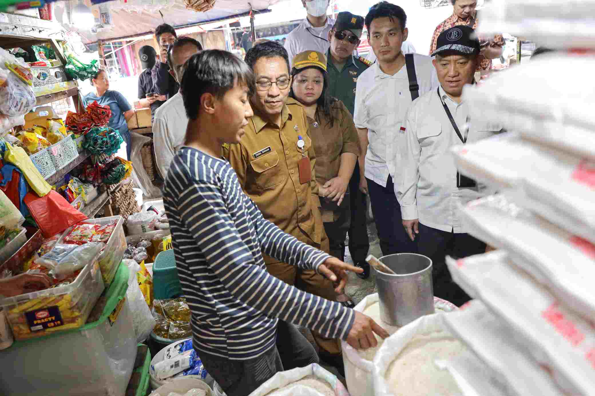 Siantar — Guna memastikan stok kebutuhan pokok akan terpenuhi di suasana Natal dan Tahun Baru, Walikota Pematang Siantar dr Susanti Dewayani SpA diwakili Asisten Perekonomian dan Pembangunan Zainal Siahaan SE MM, bersama Forkopimda melakukan inspeksi mendadak (sidak) harga dan stok kebutuhan pokok di pasar, Senin (18/12/2023). Lokasi yang disidak yakni Pasar Dwikora, Ramayana Departemen Store, dan Kilang Padi Hariara.