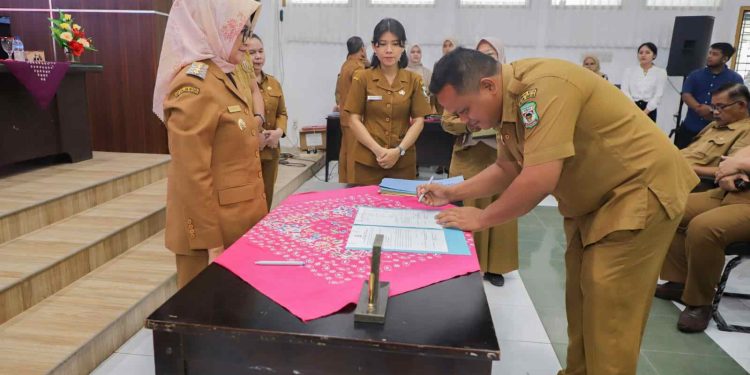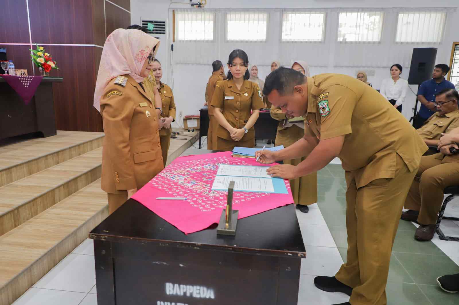 Selanjutnya dilakukan Penandatanganan Perjanjian Kinerja Kepala OPD disaksikan dr Susanti. Perjanjian Kinerja Kepala OPD diawali oleh Staf Ahli Bidang Pemerintahan Dra Happy Oikumenis Daely, dilanjutkan para kepala dinas, kepala badan, hingga para camat.