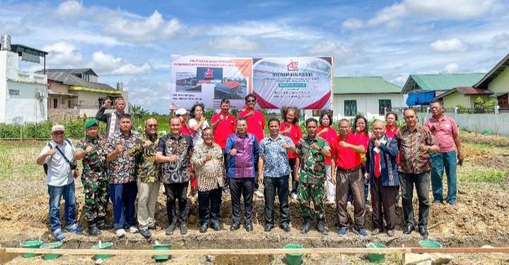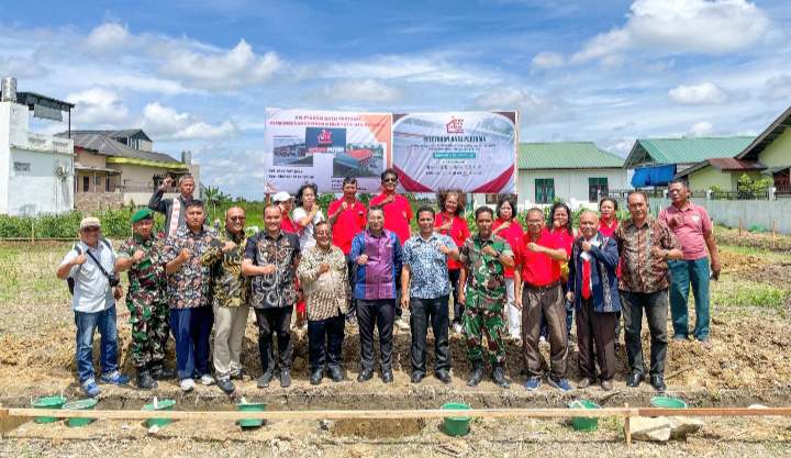 Turut hadir di peletakan batu pertama ini Danramil 03/Siantar Selatan, Kapolsek Siantar Marihat, serta Ketua Koperasi Kelurahan Merah Putih Marihat Jaya. (PR/nda)