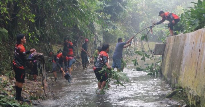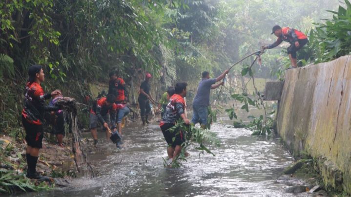 Kegiatan ini diikuti komunitas lingkungan yang berbaur bersama jajaran Organisasi Perangkat Daerah (OPD), serta masyarakat dalam membersihkan aliran sungai dari sampah dan limbah.