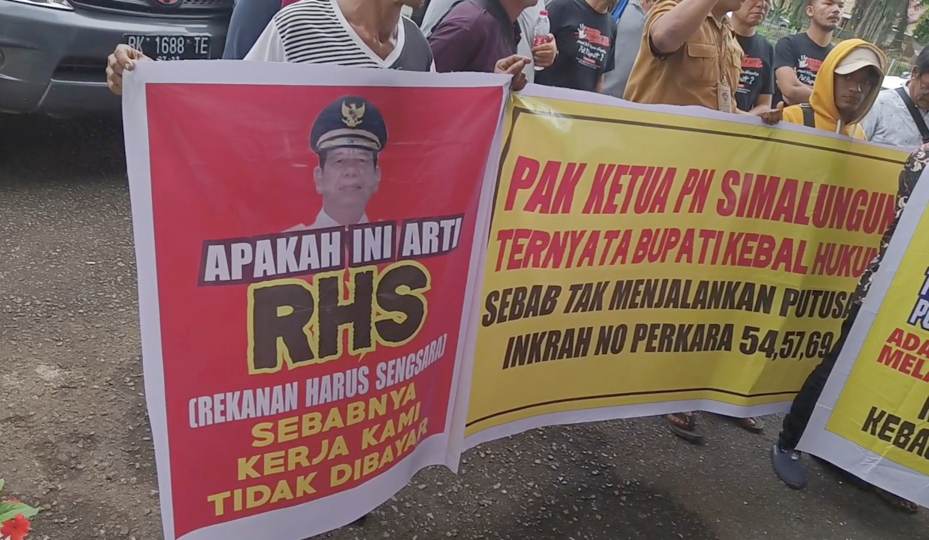 Sebelum menggelar unjuk rasa ini, para rekanan juga sudah pernah menggugat Pemkab Simalungun ke Pengadilan Negeri Simalungun, yang hasil putusannya menyatakan, menghukum para tergugat untuk membayar kerugian materil dan immateril atas seluruh kontrak kerja konstruksi beserta melakukan penggantian denda atas kerugian yang diderita para penggugat, pada tanggal 8 Maret 2023. Dan putusan selanjutnya dari Pengadilan Tinggi Medan nomor: 281/Pdt/2023/ PT MDN, yang amar putusannya menyebutkan menguatkan putusan Pengadilan Negeri Simalungun, pada 22 Juni 2023.