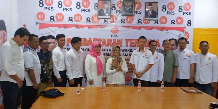 Siantar — Bakal calon walikota yang juga walikota petahana Kota Pematangsiantar, Susanti Dewayani, menyerahkan formulir pendaftaran dirinya sebagai calon walikota ke DPD Partai Keadilan Sejahtera (PKS) Kota Pematangsiantar, pada Senin sore (13/5/2024).
