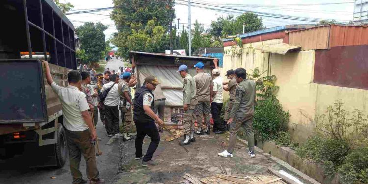 Siantar — Pemko Pematang Siantar melalui Satuan Polisi Pamong Praja (Satpol PP) membongkar dua unit bangunan kios liar di Jalan Rakutta Sembiring Lorong IV Kanan, Kelurahan Sigulang-gulang, Kecamatan Siantar Utara, Kamis (07/12/2023).