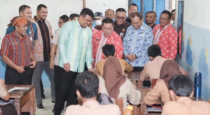 Siantar — Walikota Pematangsiantar, Wesly Silalahi, mendampingi Gubernur Sumatera Utara (Sumut), Muhammad Bobby Afif Nasution, saat mengunjungi SMA Negeri 5 Pematangsiantar, di Jalan Medan, Kamis (16/4/2026). Kunjungan ini juga sebagai langkah konkret terkait permasalahan atas lahan dan bangunan SMAN 5 Pematangsiantar.