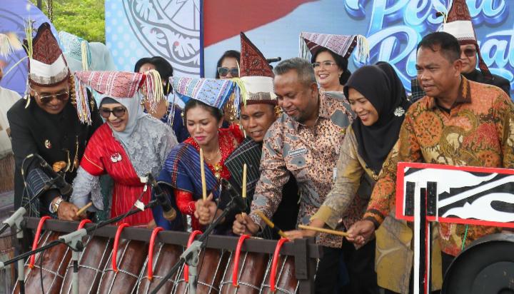 Siantar — Walikota Pematangsiantar Wesly Silalahi diwakili Wakil Walikota Herlina, menghadiri acara Pesta Rakyat memeringati Hari Jadi ke-193 Kabupaten Simalungun, di halaman Kantor Bupati Simalungun, Pamatang Raya, Sabtu (18/4/2026).