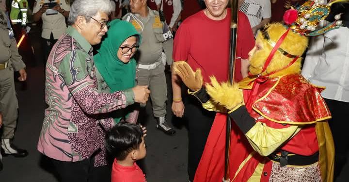 Siantar — Walikota Pematangsiantar, Susanti Dewayani, bersama Forkopimda melepas Pawai Naga Liong dan Barongsai dalam memeriahkan Perayaan Cap Go Meh. Pawai dilepas dari Lapangan Parkir Dekranasda, Jalan Merdeka, Rabu (12/2/2025) malam.