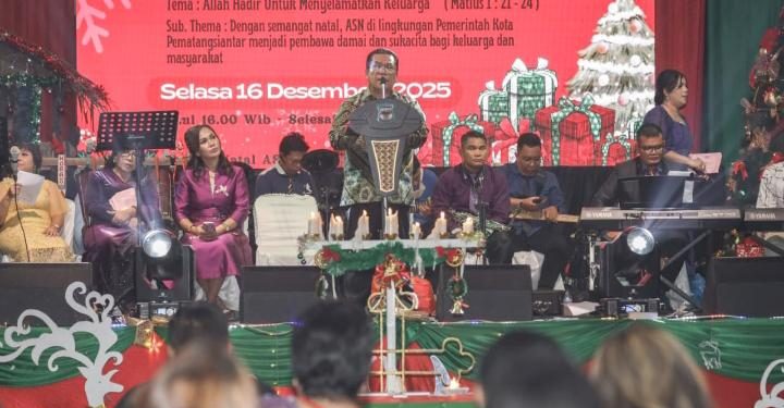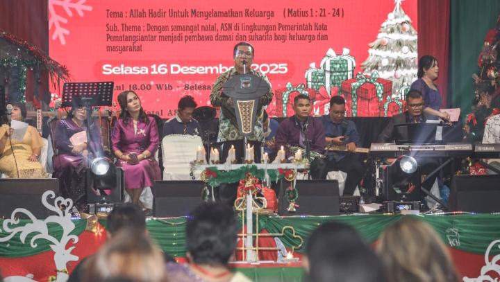 Hal itu disampaikan Walikota Pematangsiantar, Wesly Silalahi, pada sambutannya di Perayaan Natal Aparatur Sipil Negara (ASN) di Lingkungan Pemerintah Kota (Pemko) Pematangsiantar, di halaman Balai Kota, Jalan Merdeka, Selasa (16/12/2025) sore.